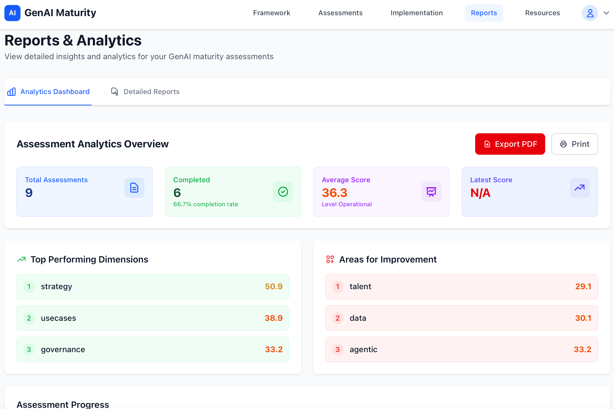 Every week, progress is being made with the GenAIMaturity.Net, and this week, I got a few additional hours to VIBE code the framework, and now, the Assessment Analytics Overview is ready