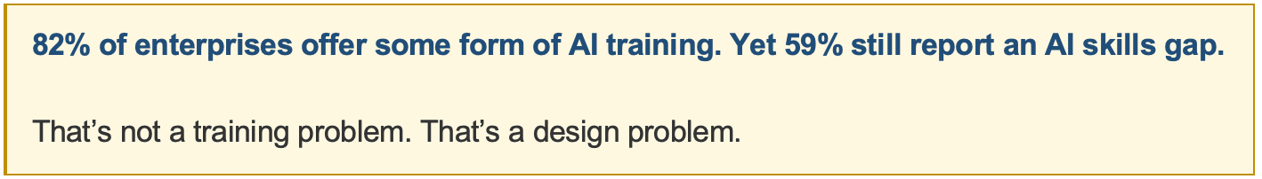 If 82% of enterprises offer AI training and 59% still have a skills gap, the training itself is broken. Here’s where: