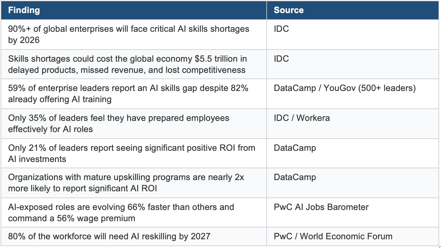 Most organizations are not failing to invest in AI skills. They’re failing to invest in the right skills, for the right people, in the right way. The training exists. The capability does not.